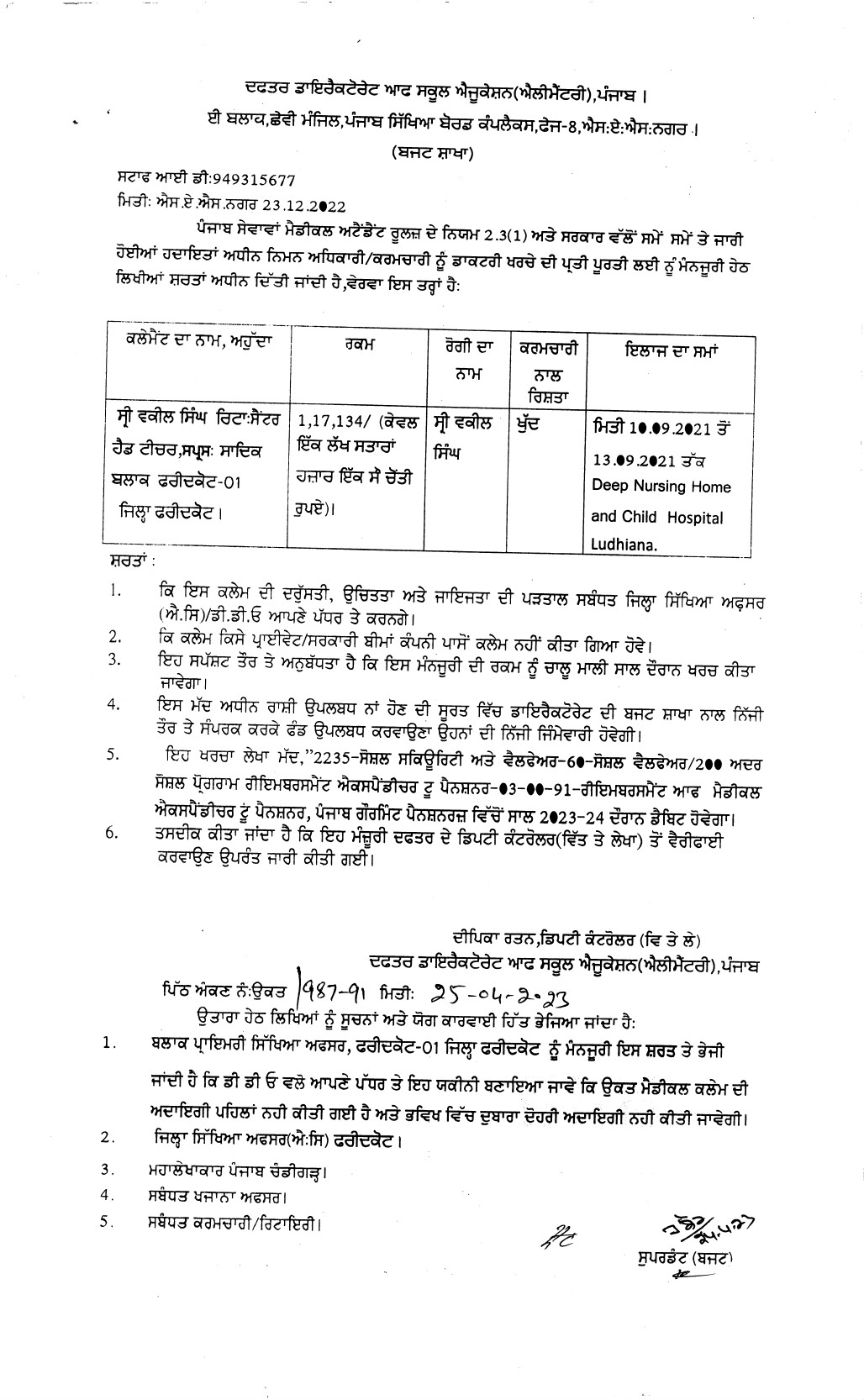 Approval of medical bills of employees