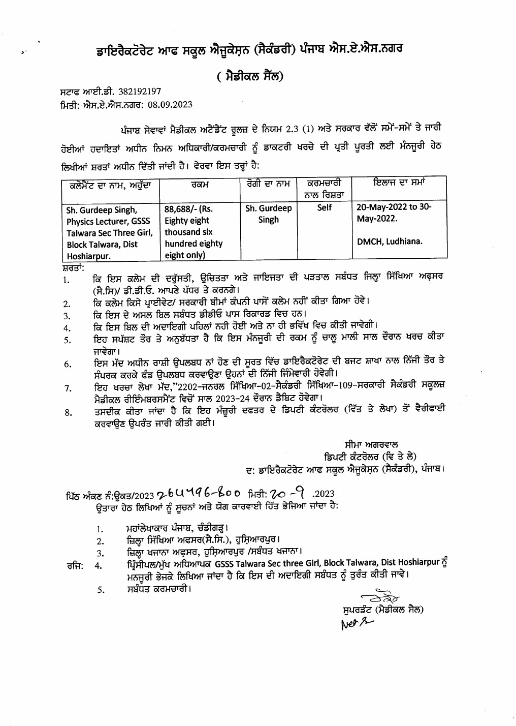 Approval of medical bills of employees